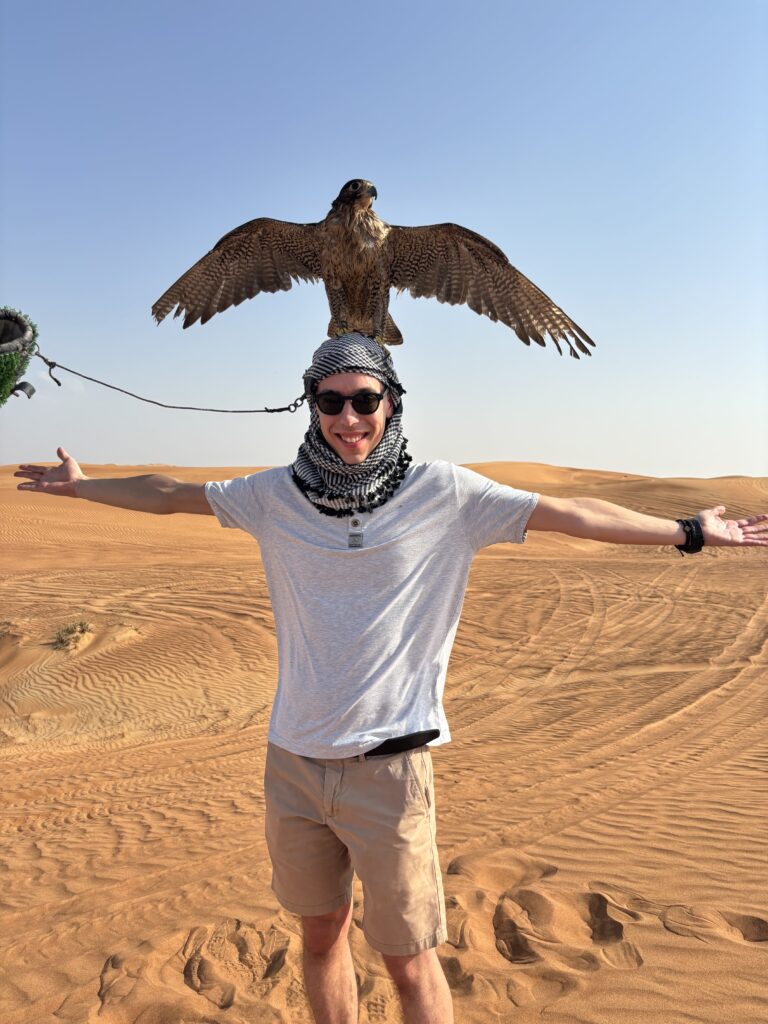 I must admit that riding a quad in the desert is much harder than it seems at first glance, but I quickly figured out the trick – whenever you feel unstable, you just hit the gas. Trust me, even though it’s not intuitive at all. Despite the challenge, there’s something incredibly empowering about riding across an endless sandy horizon. And yes, the bird on my head definitely adds to that feeling.