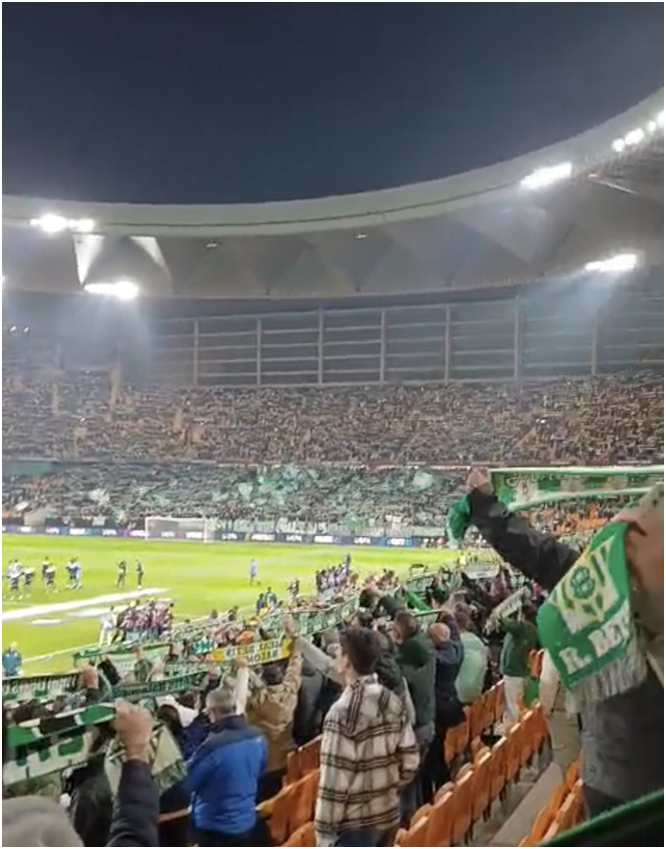 In the evening, it was time for Real Betis vs Utrecht. Green and white everywhere, fans singing, and us trying to follow the Spanish commentary while analysing the “control strategy” of Betis’ attack.